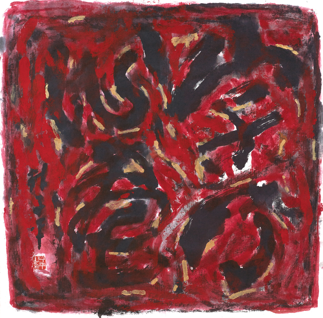 Ink and colour on rice paper · 101.5cm x 104cm