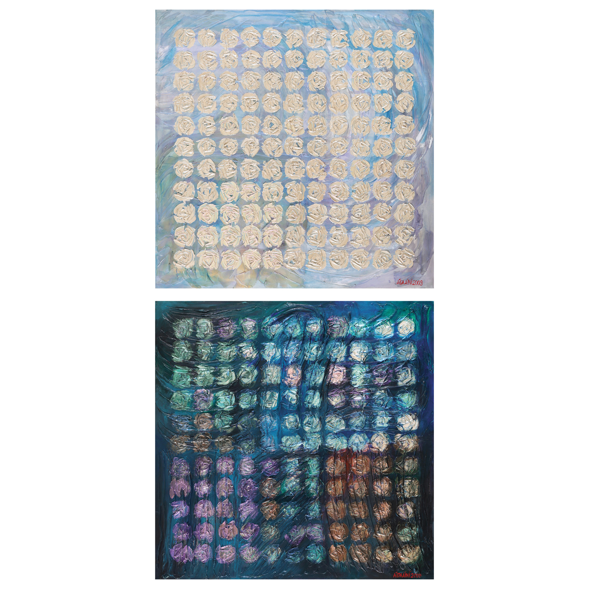 Mixed media on canvas · 140 x 140cm (each), set of 2