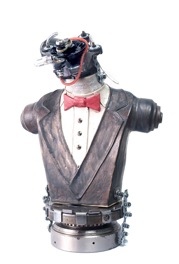 Ceramic (stoneware), vehicle part machine, wire tube, LED lamp · 43 x 30 x 20cm