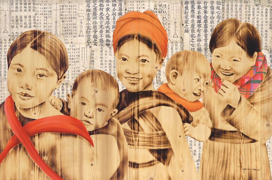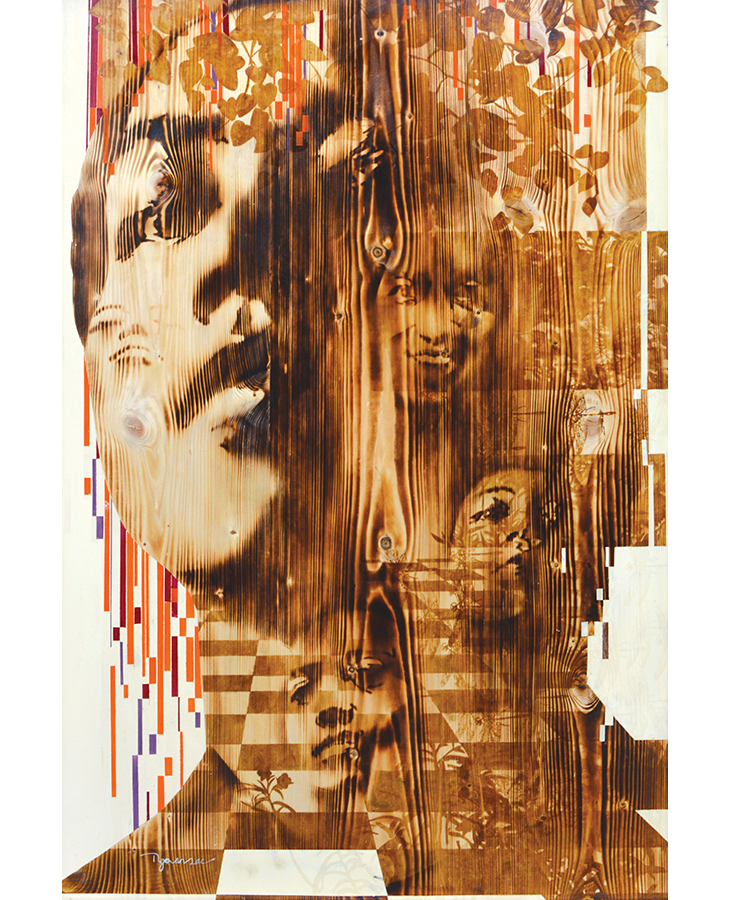 Burnt wood and acrylic on wood · 120cm x 80cm