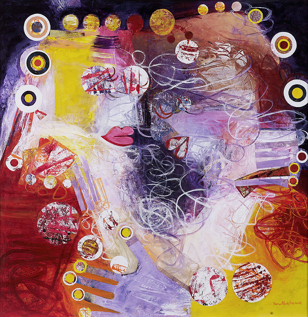 Mixed media collage on canvas · 115cm x 115cm