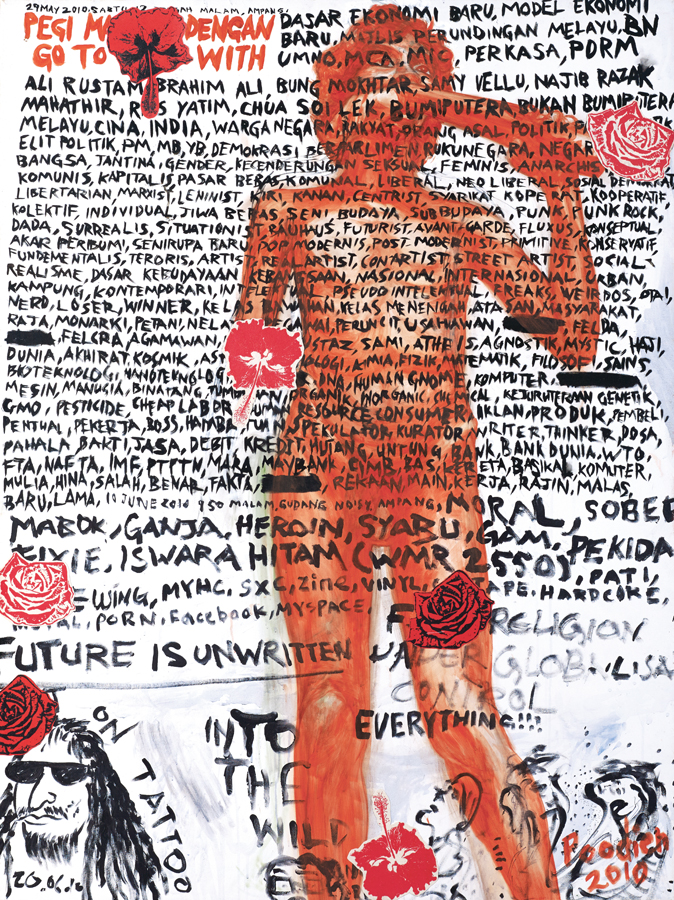 Oil, acrylic, silkscreen and collage on canvas · 156 x 117cm