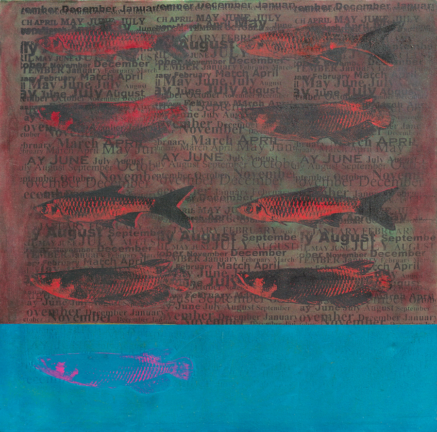 Acrylic on canvas and screen printing · 91 x 91cm